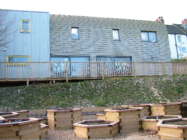 Another practice who can be included in this emergent tributary, is Sussex based, BakerBrownMcKay Sustainable Design (who have since split two ways into BakerBrown and Deeper Green), which in the last year have seen their practice workload take off, with five or so buildings completed and launched during that time. Last autumn The Independent’s architecture writer, Jay Merrick visited their recently completed residential house in an uptown part of Brighton, and easily persuaded, proclaimed the arrival of Eco-Cool; stylistically recognisable and therefore attractive, accessible and affordable to a middle-income bracket. The building looked unmistakably modernist, yet was built from sustainable materials; raw clay plasterwork, laminated bamboo paneling, organic paint and sweet chestnut cladding and joinery. This cool, almost sexy, architectural literacy speaks to middle class clients in a way arguably more radical but inaccessible eco-buildings just didn’t, and don’t. With the build-cost at £250 000 Merrick wondered, not unreasonably, why such an eco-architecture couldn’t be just as suitable for town-centres, suburbs and villages?