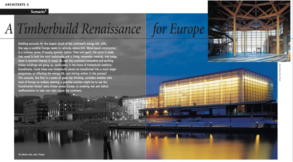 In-depth feature on the Nordic countries (including Finland) turn to timber architecture and massive forest reserves could make real inroads into Europe’s combined building sector energy and carbon emissions