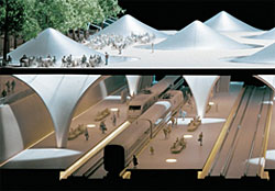 It is easy to speculate that such a hi-tech backdrop hardly undermined the rationale for both the tunnel solution and Otto's involvement in the through station design. On the S21 website even if the computer renderings of the Ingenhoven-Otto designs look beguiling, with the underground station sunk eleven metres underground and at right angles to the current terminus, the tunnels seem extraordinarily long, with the approximately 20 kilometre below ground west side approach a strange way, as one of the Kopfbahnhof 21 above ground alternative grouping, pointedly remarked, to make arriving in a city attractive. In 2003, after arguments had been growing for nearly a decade, Otto, would leave the project and for a while become a considerable thorn in its side.