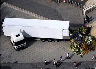 Fantasy Island… starred 25,000 flowers spilling out of the open end of a jack-knifed articulated lorry in a busy Bristol street, followed by observation of how passer-by’s responded to the freeload of thousands of flowers for the taking, splayed across the road. A final flower show,